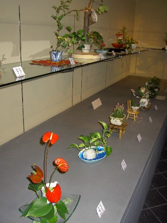 | 花さく器アートコンテスト 市之倉焼の陶器の器に山野草・花を自由に飾り付けます。 どれも力作ぞろいでした。 |