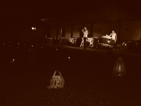 | 明かりの器コンテスト、ゆらぎコンサート「和太鼓ガナ」 やきものの明かりで幻想的な雰囲気をかもし出しました。 |