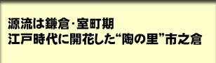 | 市之倉が煙りを上げ始めたのは、鎌倉時代後半から。釉薬(ゆうやく)をつけない無釉山茶碗を数多く生産していたことが、当時の窯跡からわかっています。江戸時代に入ると「中窯」「水神窯」を中心に陶業が 盛んに行われ、灰釉之皿や鉢、片口など多数の日用品が製造されていました。 美濃焼産地の中で最も早く磁器を生産してきた市之倉は幕末になると 質の高い磁器の製品が完成。江戸幕府本丸御用・京都村雲御所御用等々を 仰せつかるようになり、美濃焼の先駆者として名声を高めました。 |